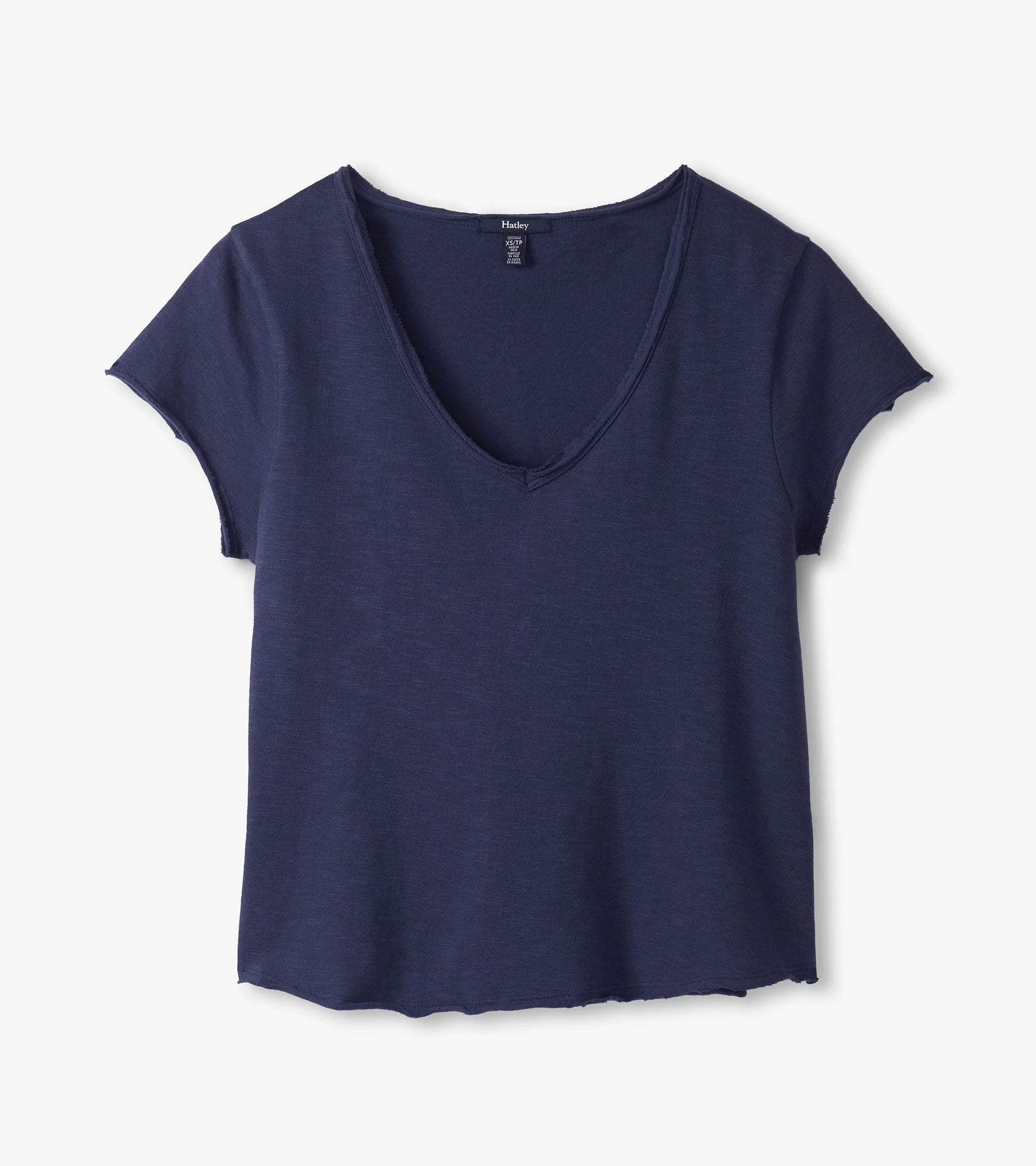The Sadie V-Neck Tee offers effortless style with a hint of boldness. Made from premium cotton, it features a curved hemline, trendy raw edges, and a comfortable flattering fit. The shades pair perfectly with neutrals or prints for versatile styling. Whether layered or worn solo, this tee is a standout choice.