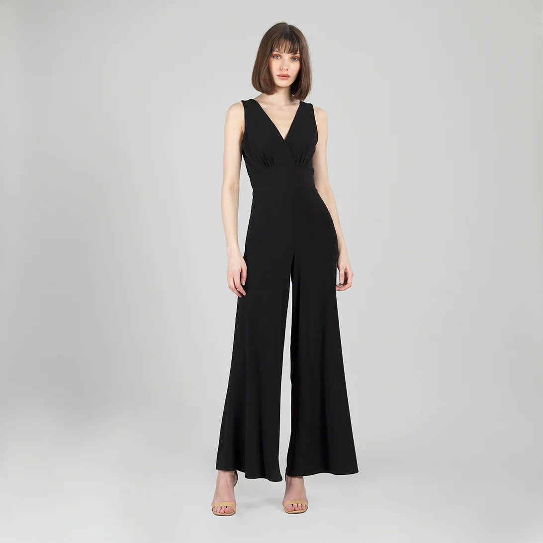 With comfort in mind, our Signature Jumpsuit is designed to be an on-the-go, easy-to-wear - step in and pull on one piece with no zippers or ties! Featuring a graceful surplice neckline that gently wraps and contours your natural curves with a 4" control waistband designed to provide a slimming and gorgeous silhouette. This look finishes with full-length, wide-leg palazzo pants making each stride as fluid and elegant as you feel.